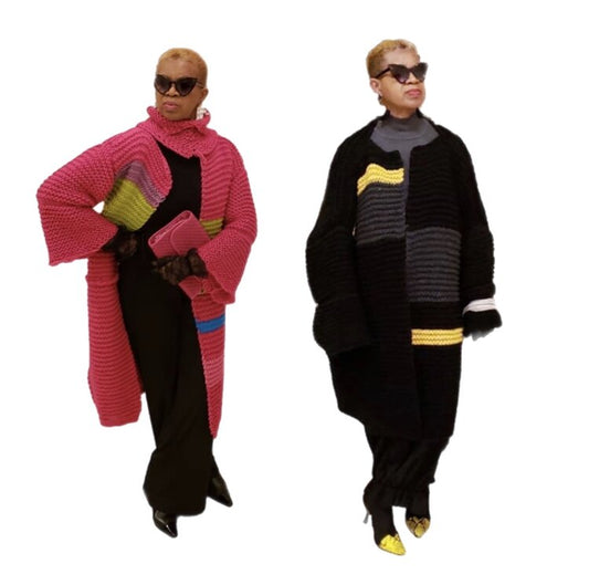Sassy Split Sweater and Scarf in pink, lime, and black accents