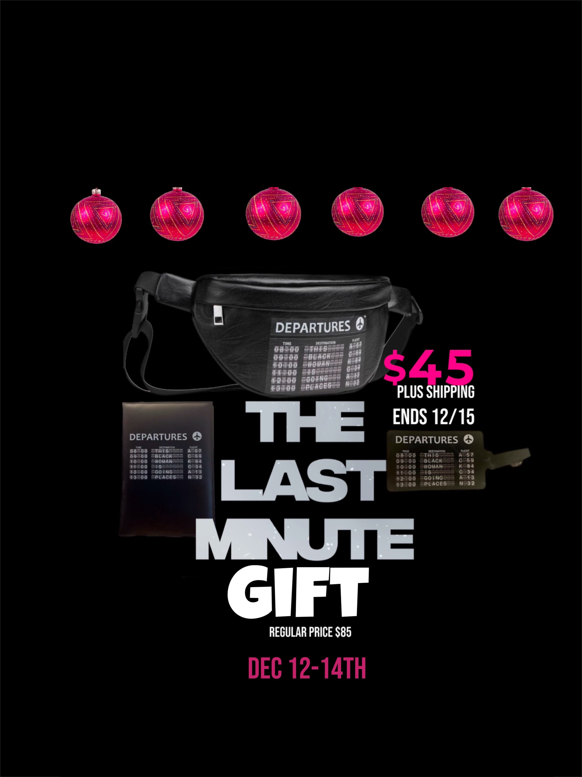 The Departures Fanny Pack has our signature logo “This Black Woman Is Going Places.” This new travel piece is vegan leather, compact, yet spacious. It has a front zippered pouch for your passport, wallet, and phone. The adjustable compression strap ensures a comfortable customizable fit, allowing you to wear it around your waist or toss over the shoulders as a crossbody. The Departures Fanny pack is ideal for travel, errand runs, car pooling with the kids, field trips, and so much more!